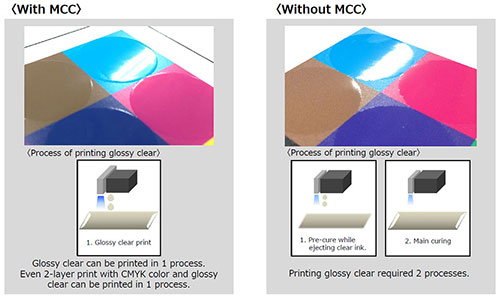 3. เทคโนโลยีใหม่ Mimaki Clear Control (MCC) ช่วยรักษาน้ำหมึกในระหว่างการพิมพ์ ลดการยึดเกาะของฝุ่นและอากาศขณะพิมพ์