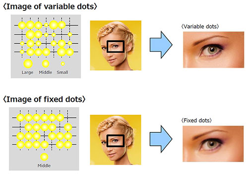 7. ระบบ Waveform Control and Variable Dot Printing สามารถควบคุมหยดหมึกพิมพ์ ทำให้ภาพที่พิมพ์มีความนุ่มนวล มีมิติ และคุณภาพดี